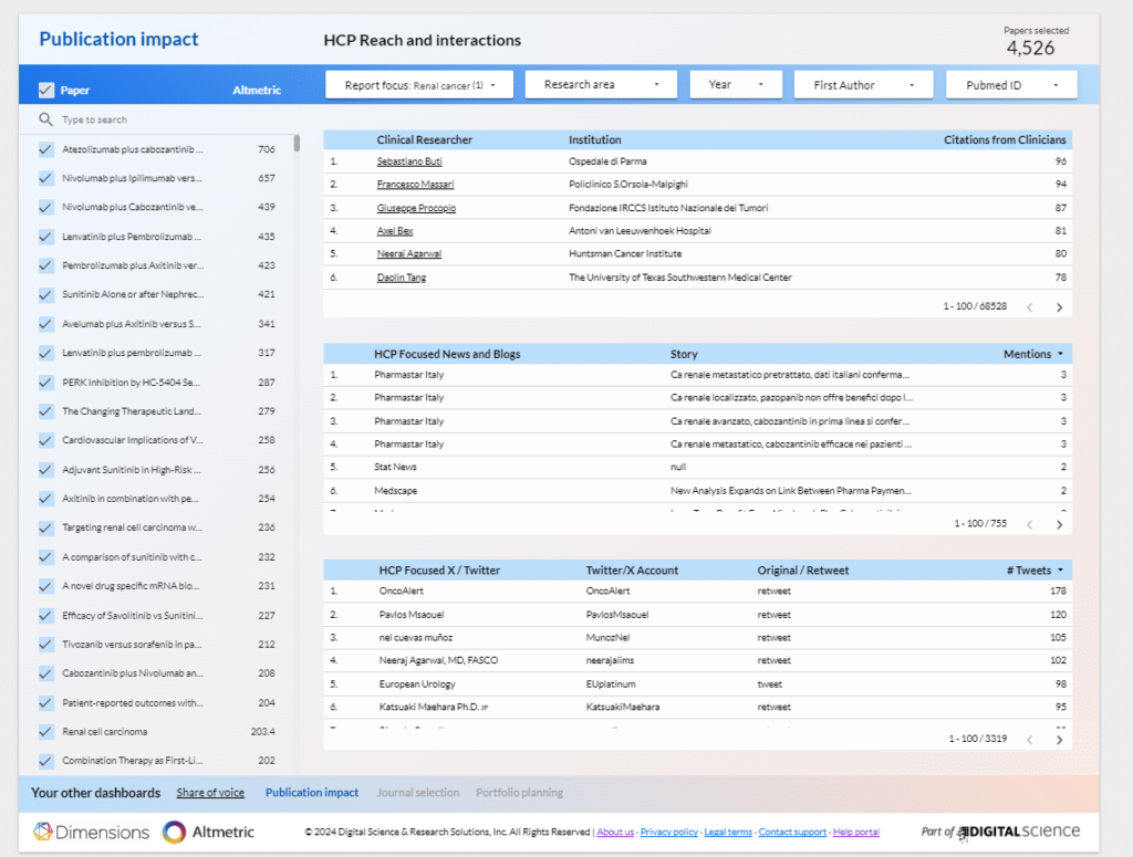 Track and analyze the full scope of research impact using Dimensions and Altmetric.