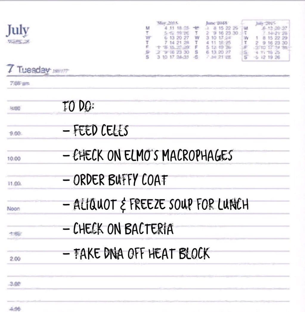 There is a cluster of confused-looking scientists standing around our institute coffee machine. It’s broken. “What are we going to do??” we look at each other in mild panic. “I planned my incubation time around our coffee break, but it’s not long enough to go outside and buy some” Katja complains. Narges and I smile. Planning centrifugation steps, incubation periods, and even meetings around lunch and coffee breaks or vice versa is as integral to science as is pipetting and writing manuscripts.