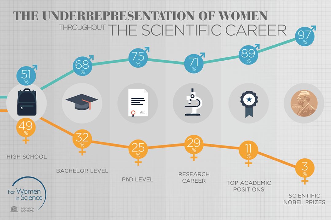 Dr Alexis Webb (@lexbwebb), chronobiologist and postdoc at the Crick Institute, moderated the discussion and introduced her fellow panel members. Dr Webb also gave a really informative and useful overview of the problem, introducing some powerful stats around the representation of women in STEM, as well as public attitudes towards women’s ability to succeed in STEM.
