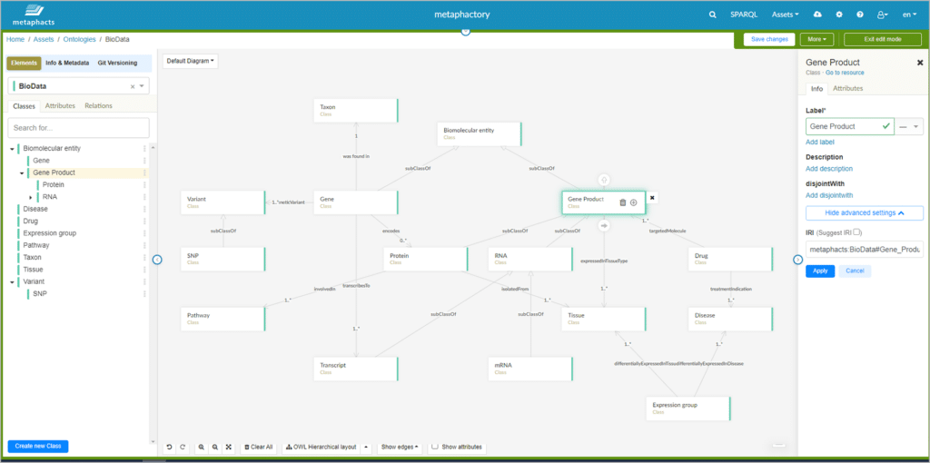 You need to bring business to [the ontology modeling] activity because IT folks lack the domain expertise, of course, and they cannot create this data model for you. Here we started using metaphactory’s visual modeling interface where users can create ontologies and taxonomies in a collaborative way.”