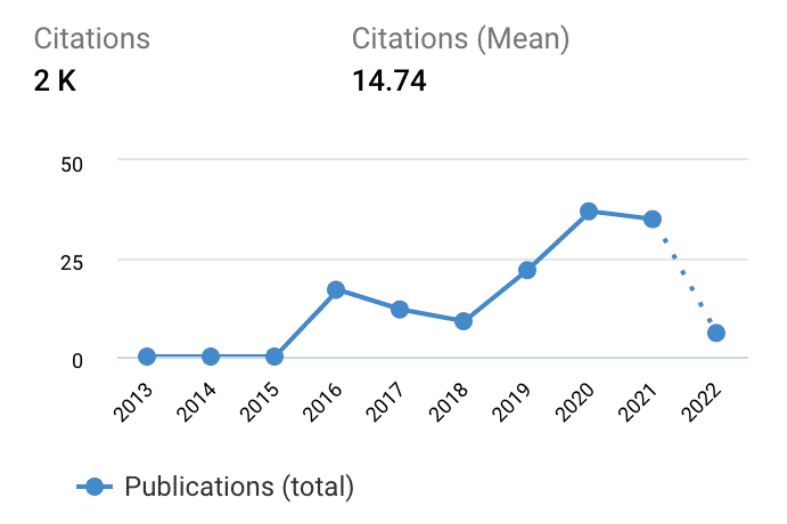 • A large number of articles published (130+) in a short time (from 2016-2021; source: Dimensions)