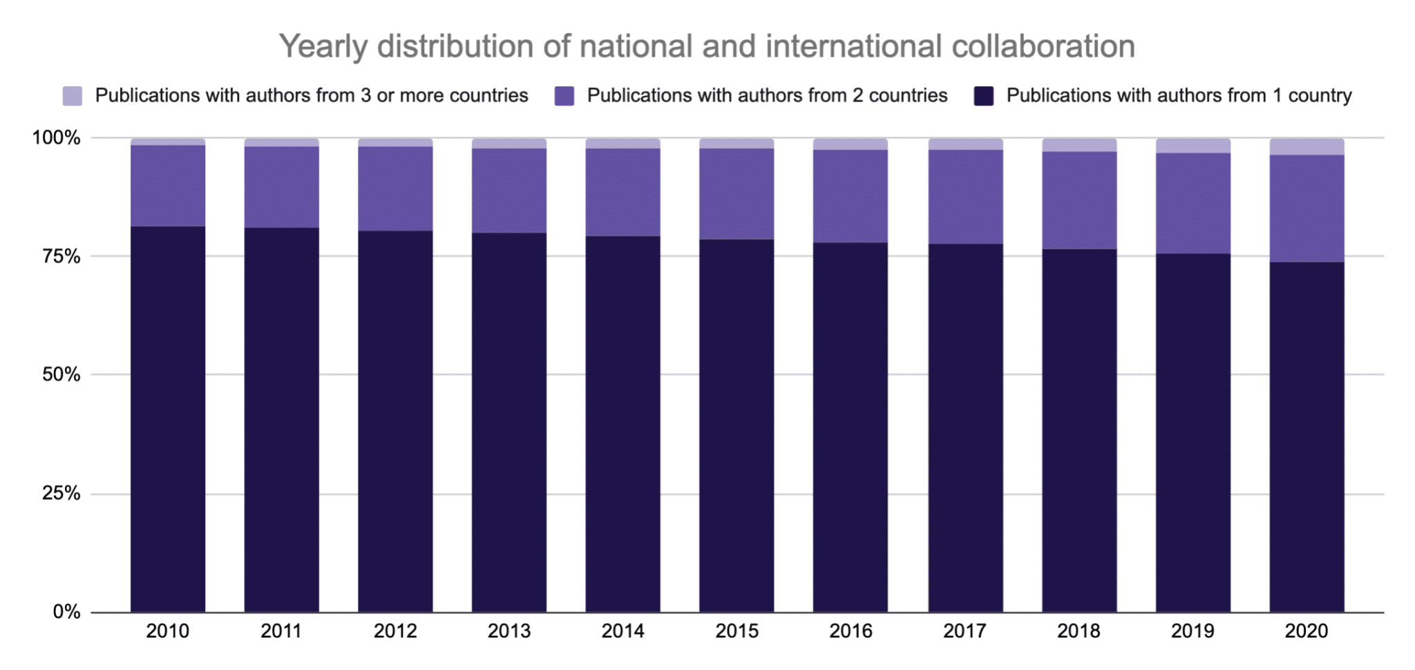 Figure 4: The percentage rise in collaborations between 2010 and 2020, based on Dimensions publications data.